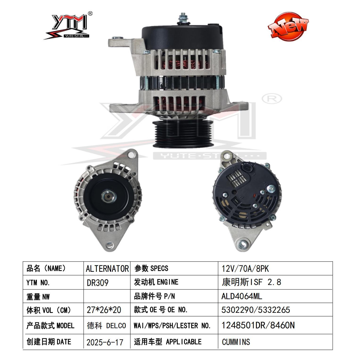 Alternatore 12v 70a 8pk di alta qualità Premium per Cummins Isf 2.8 ONAN 5302290 5332265