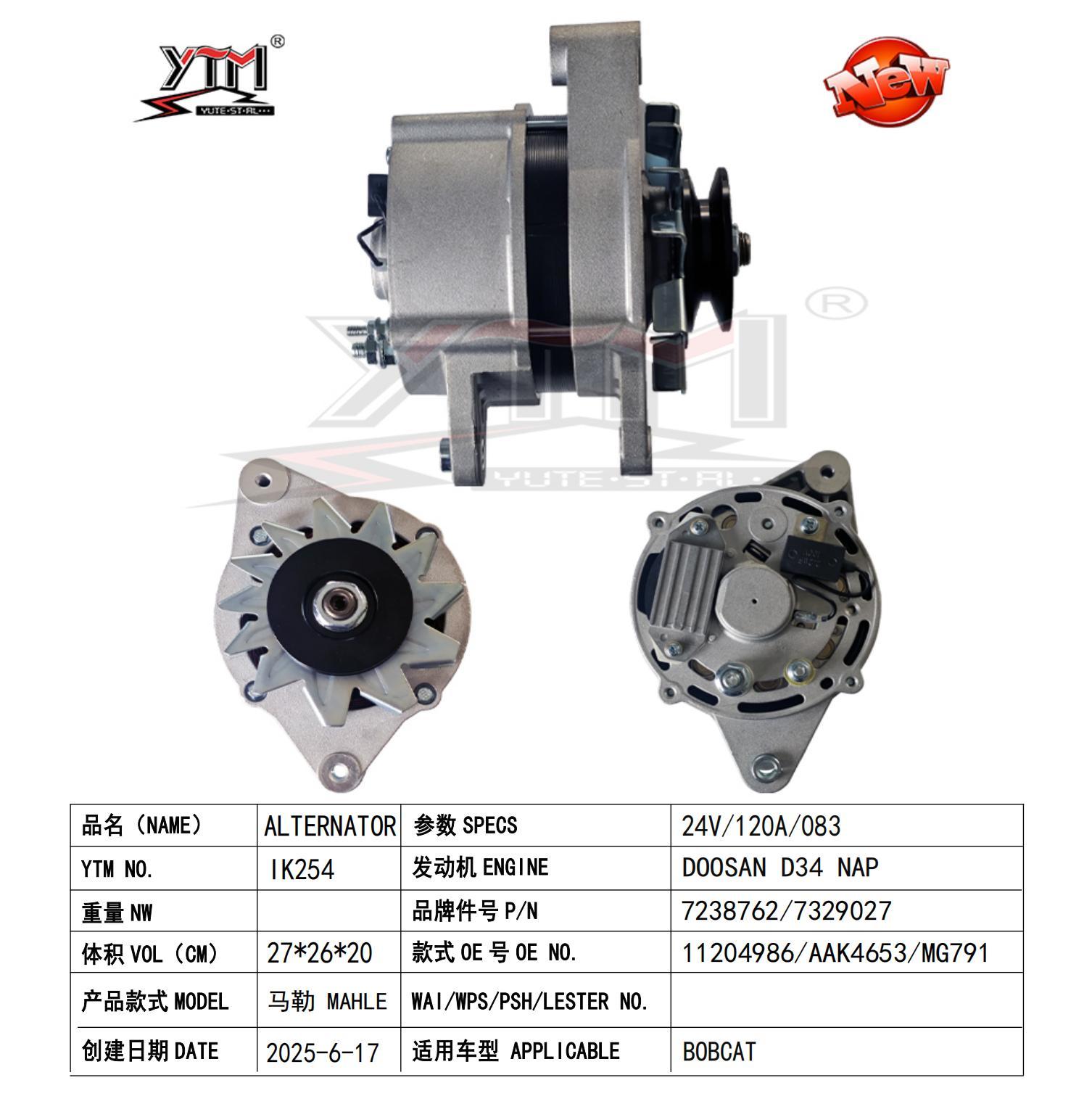 Alternatore a singola fessura 12V 120A O83 per Bobcat Mahle modello AAK4917/AAK4653/11.204.629/MG791