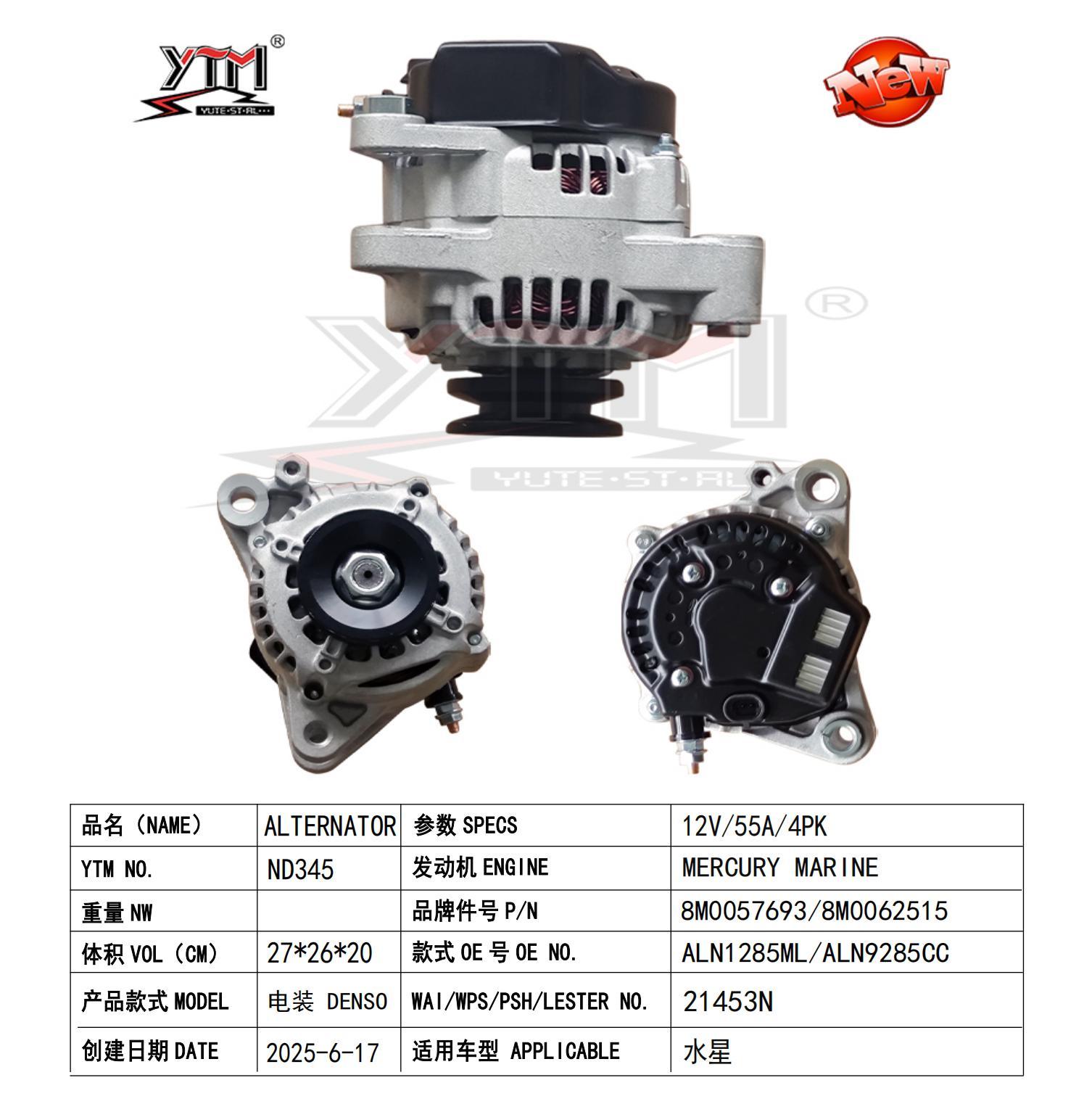 Alternatore Premium 12V 55A 4PK per Mercury 8M0057693 8M0065239 ALN1285CC